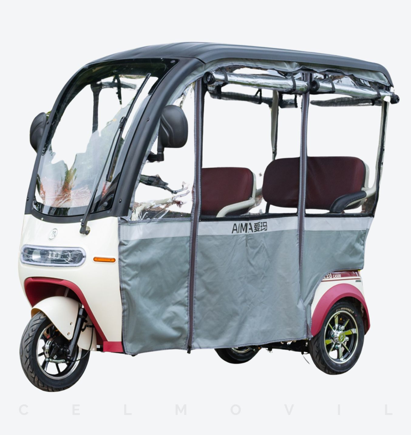 Trimoto de paseo, Batería de Plomo Acido 60V20AH, Motor 650W, Asientos grandes, Velocidad 30km/h Puerto USB, Freno de Pie, Autonomia 60km, Freno de Mano Anti-Deslizar, Luz Intermitente, Luz Direccional, Función Retroceso.