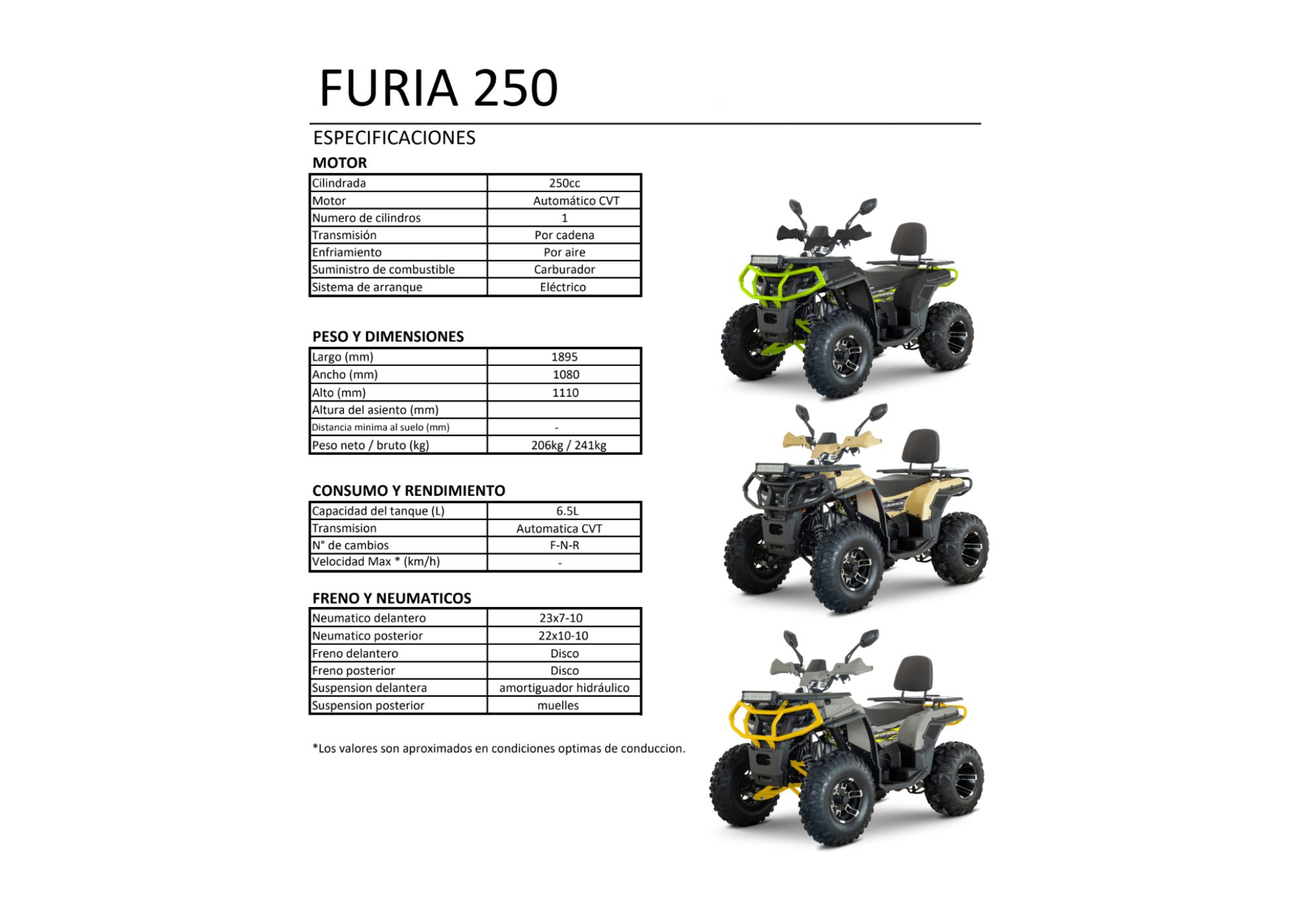 Un potente motor de 250 centímetros cúbicos y con una carrocería dominante, fuerte, resistente y llamativa. Lista para tus paseos y trabajos más desafiantes. Cuenta con un sistema de luces led, tablero digital amortiguación hidráulica y una transmisión automática.