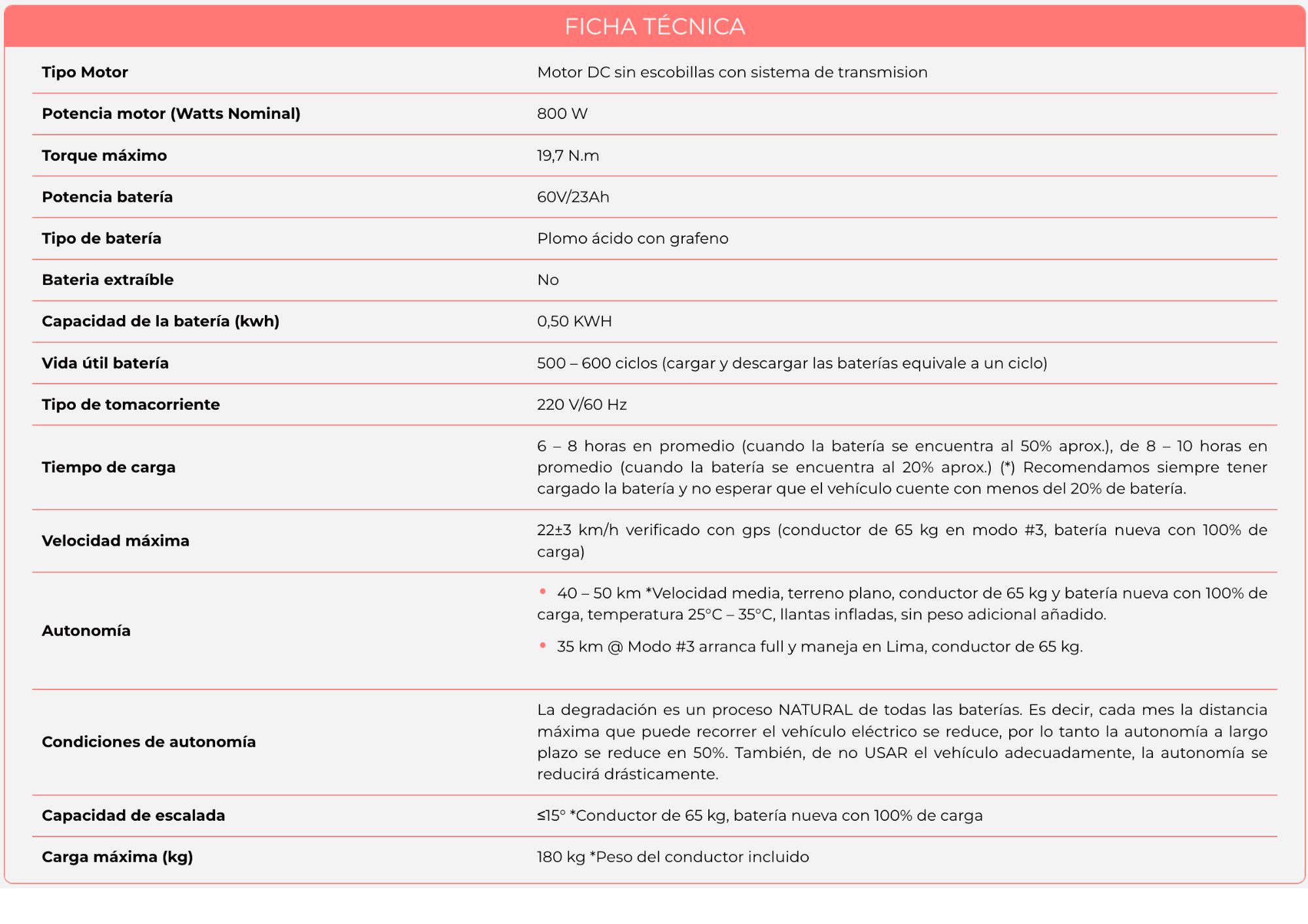 Trimoto de paseo, Batería de Plomo Grafeno 60V23AH, Motor 800W, velocidad 25km/h y rinde autonomia de 50km, capacidad de carga 180kAsientos grandes, Freno de Pie, Disco de freno delantero, Freno de Mano Anti-Deslizar, Luz Intermitente, Luz Direccional, Función Retroceso con camara. Incluye ROOSTER