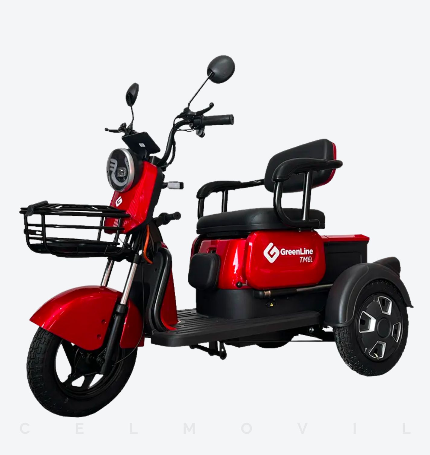 Trimoto eléctrica de paseo con batería de LITIO FERROFOSFATO 60V20AH (Vida útil de hasta 8 años) y motor 650W, cuenta con velocidad máxima de 32 km/h y autonomía de 45 a 55 km.