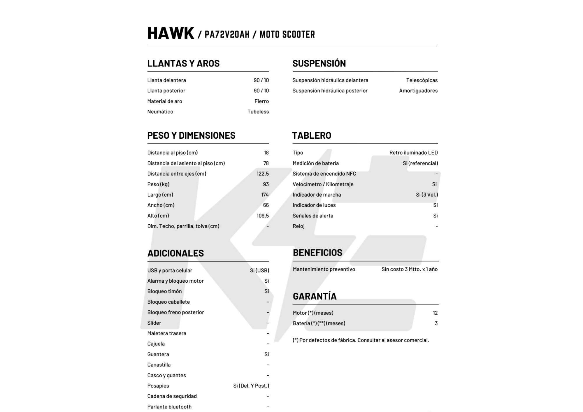 Es una moto eléctrica scooter con tecnología de vanguardia. Equipada con motor 1000W. y con una autonomía entre 70 Km
