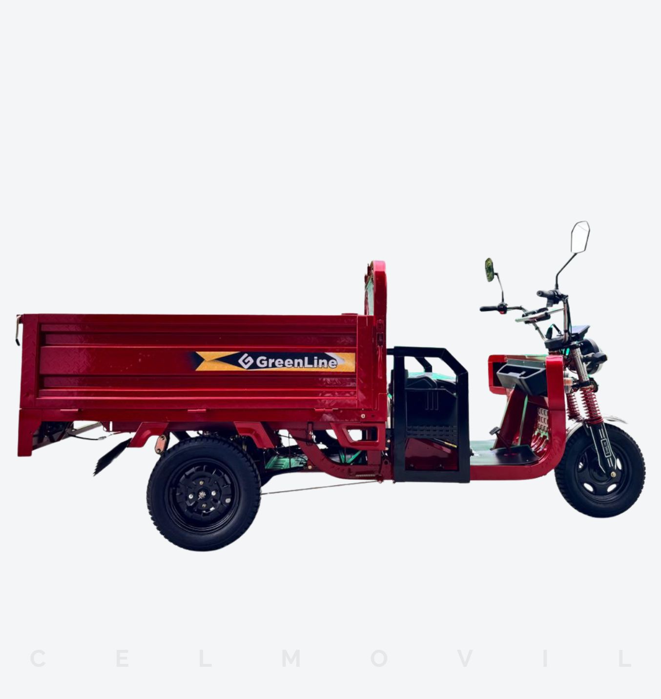 Este Carguero Eléctrico de carga con sistema 100% eléctrico, batería de plomo 60V45AH, motor 1500W. Chasis reforzado con tubos rectangulares, sistema de transmisión para alto torque y llantas de 4.0-12.