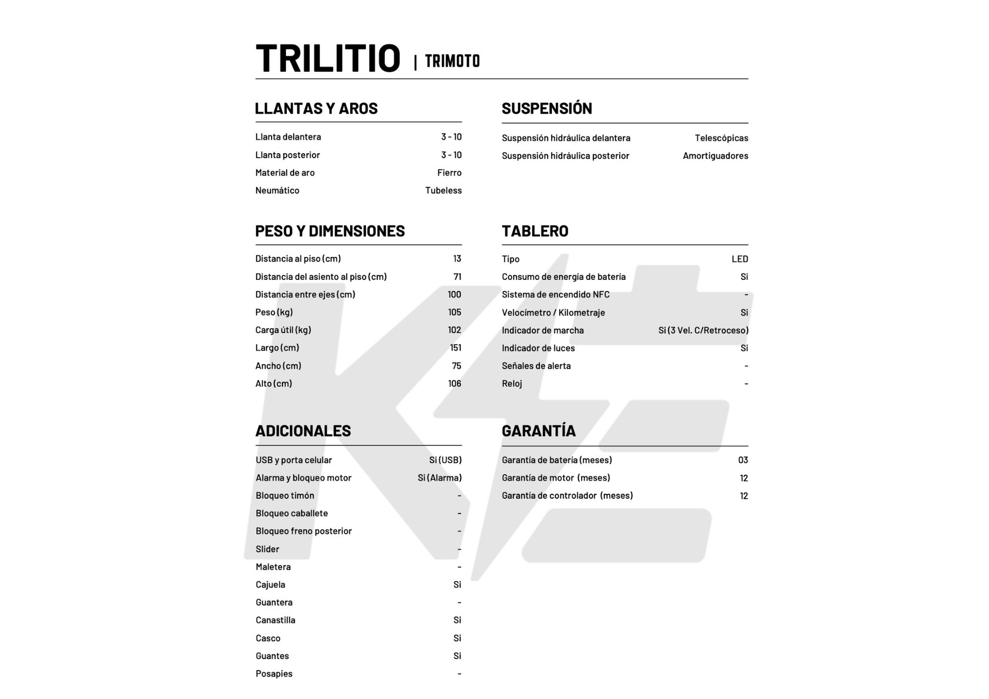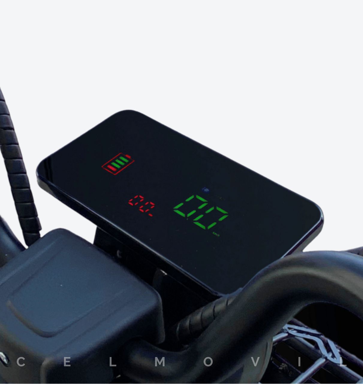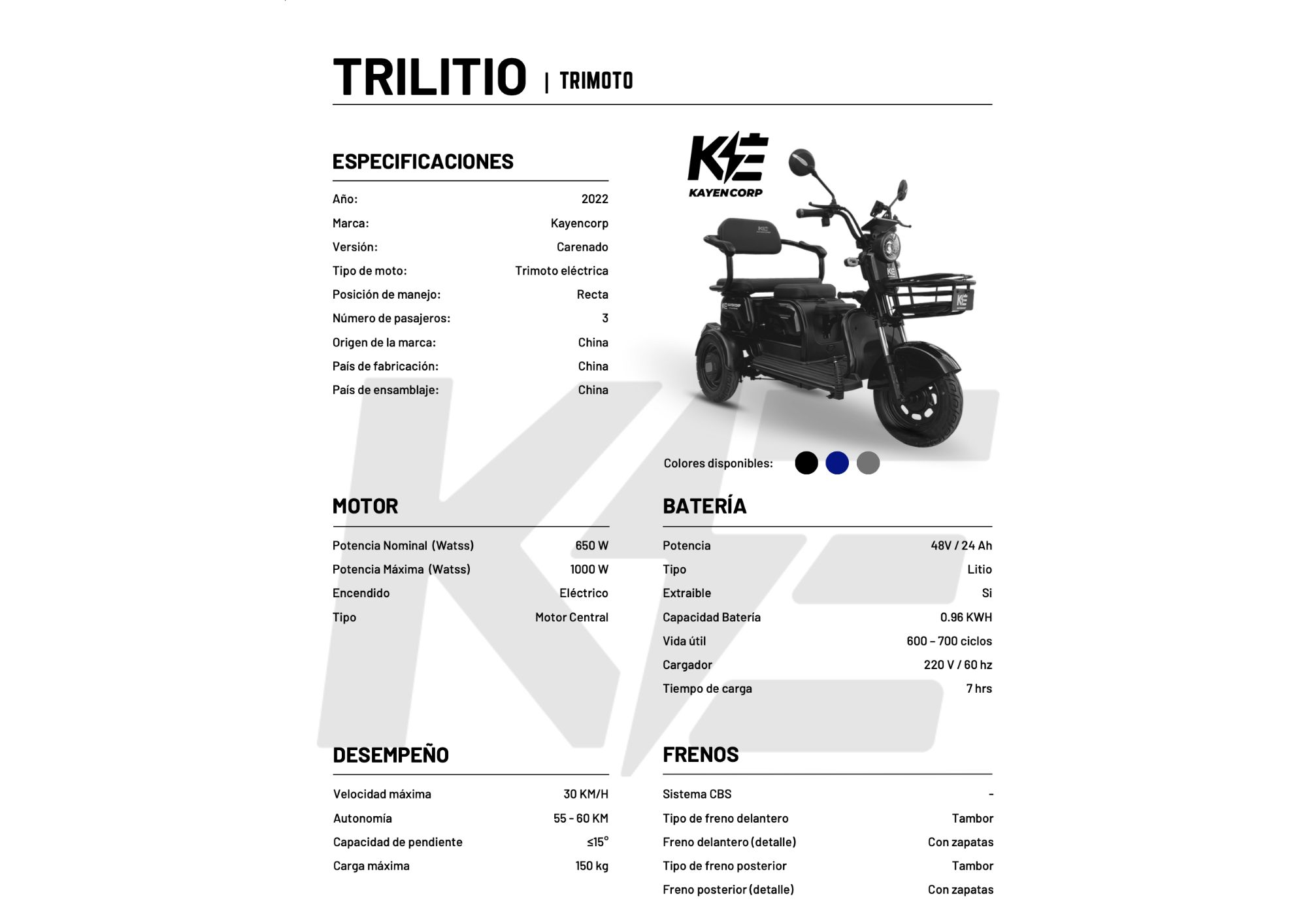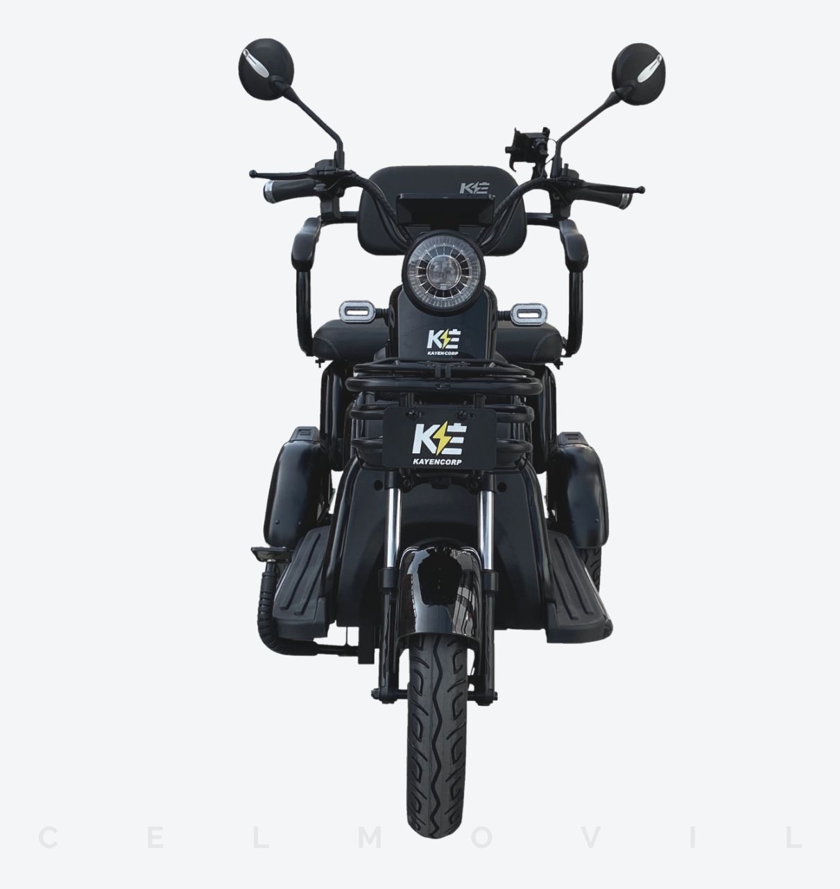 Trimoto de paseo, con batería de LITIO FERROFOSFATO – LifePO4, 48V24AH (Vida útil de hasta 5 años), motor 800W, 2 asientos transformables; Aro de 10 y llanta 3.0-10, Mas alto; freno de mano anti-deslizar, luz intermitente, luz direccional, función Retroceso.